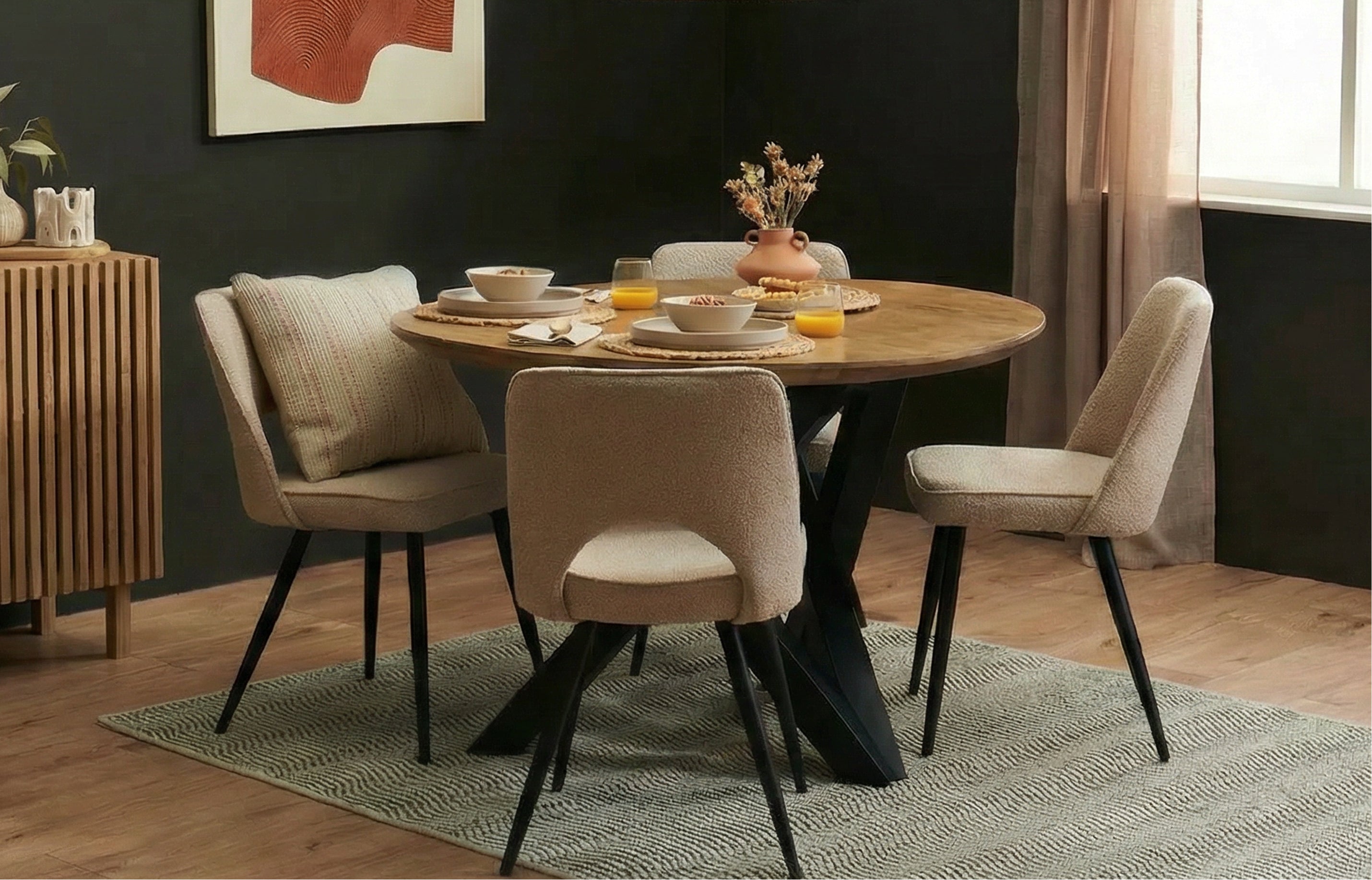 Free Furniture CoverEzra 4 Seater Round Wooden Garden Dining Set with 4 Hali Natural Rope Chairs