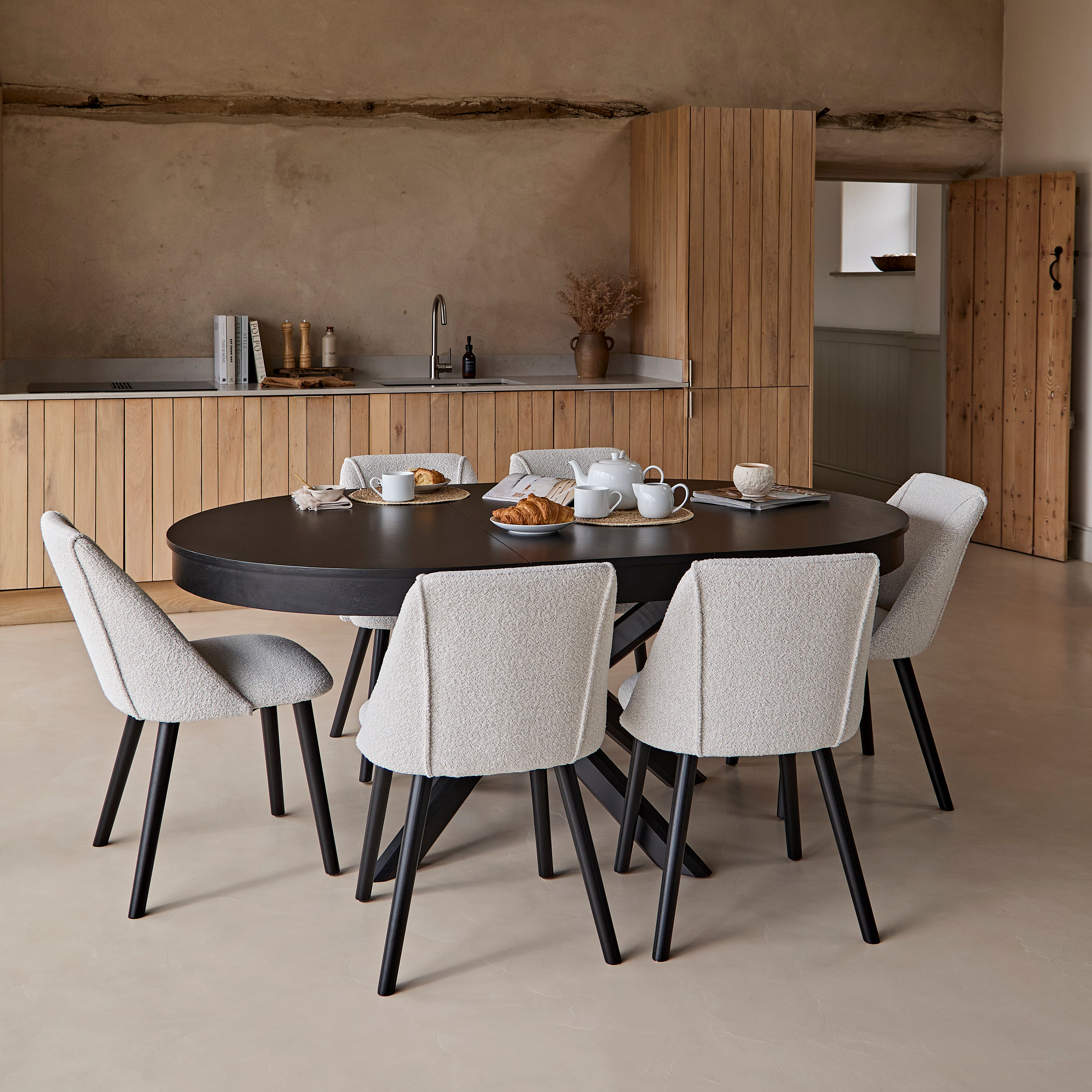 Ezra 6 Seater Oval Wooden Garden Dining Set with 6 Hali Black Rope Chairs