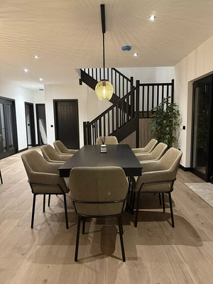 Beautiful table. Goes perfectly with the Reagan almond chairs. Amelia extendable table to seat 10. Stylish & well made.