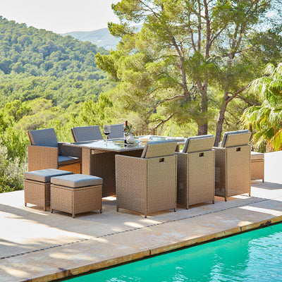 Laura James wide range of rattan garden furniture are the perfect patio furniture addition for summer. Choose from an elegant garden table and chairs set in our rattan bistro sets for two, or sit and relax in the sun with our 4 seater or 9 seater sofa sets. Our rattan garden furniture are all complete with luxurious garden cushions. Enhance your outdoor sofa set space with one of our beautiful outdoor rugs, perfect for bringing indoors outdoors!