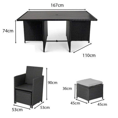 Our 10 seat black rattan cube set with polywood topped table is, one of the most versatile options for your garden and gives you fantastic value for money. One of the best features of this set is how compactly it stores away; the footstools fit underneath the seats which then tuck neatly underneath the table with polywood top. With 6 chairs and 4 footstools that double up as extra seating, this set is perfect for outdoor entertainment.