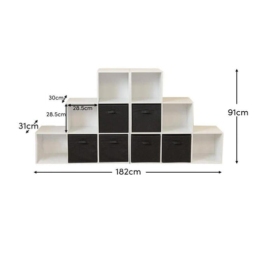- Set Includes - 2 x 6 ladder storage units & 6 x black storage boxes.