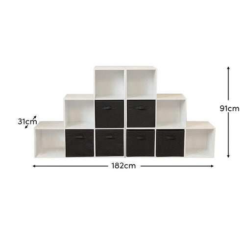 12 Cube Bookcase Ladder Storage Unit - White - Two 6 Cube Units (Black Basket) - Laura James