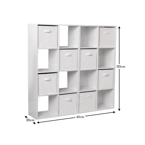 This Cara 16 cube storage unit can be placed within your home office, bedroom, playroom, or hallway space, allowing you to store away paperwork, books, and toys with ease. Cara allows you to keep your home belongings out of sight, with easy access to them when needed.