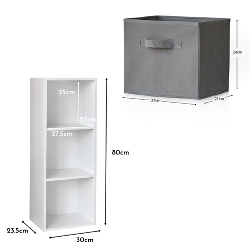 Cara 3 Tier Chalk White Cube Storage Unit - Grey Baskets