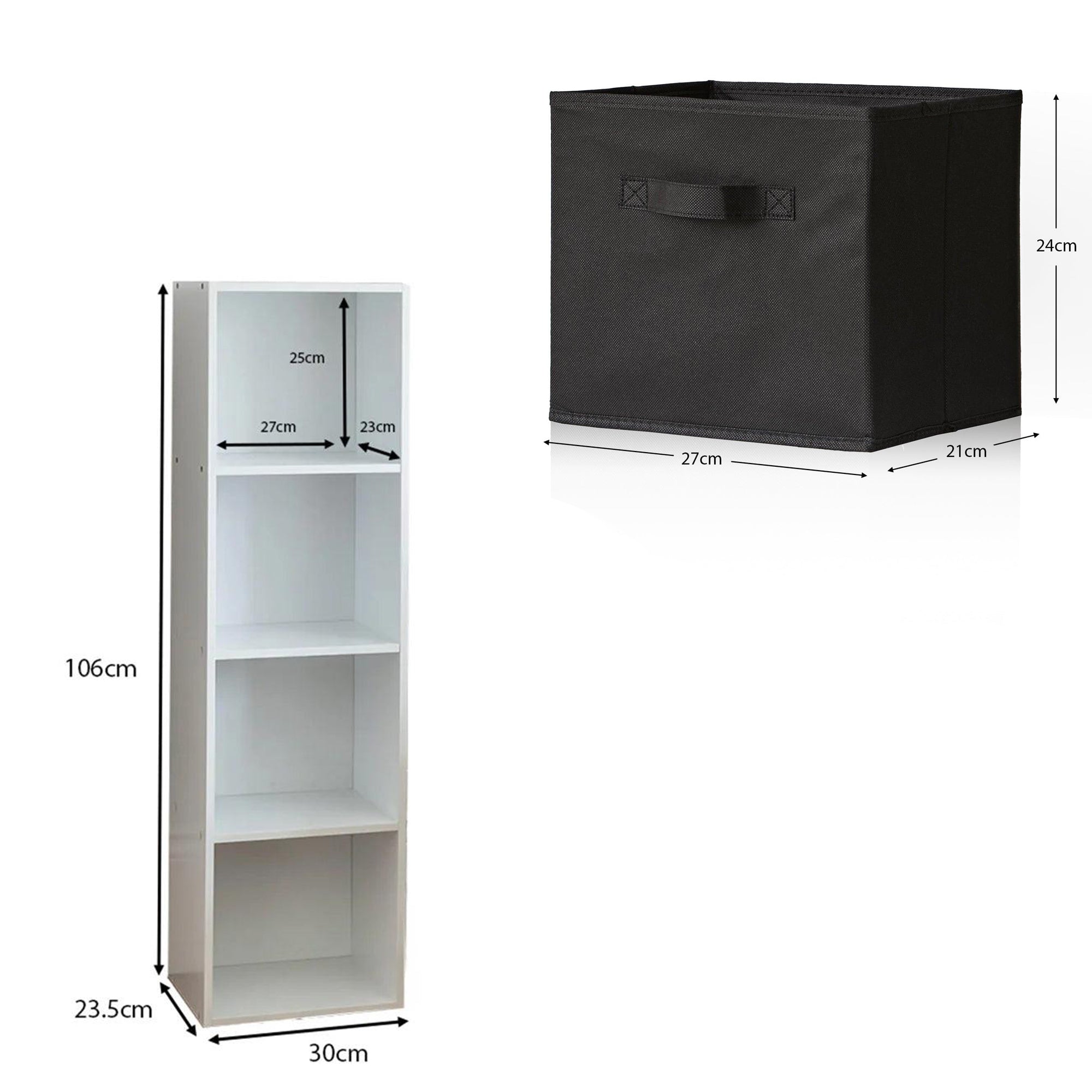 Cara 4 tier storage unit / chalk white bookcase with black boxes Fabrics