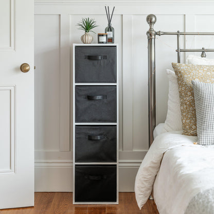 This cube storage unit offers a compact storage option perfect for any room. With 4 cube spaces and black fabric storage boxes, this bookcase offers plenty of storage to keep your belongings tidy.