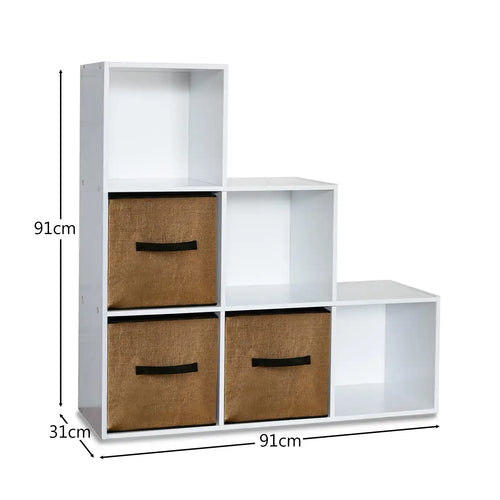 Get organised with this cube chalk white storage unit. Featuring 3 x 27.5cm jute natural storage baskets, this 123 bookcase is perfect for organising your belongings and keeping clutter out of sight. With a ladder design, this storage unit can fit in awkward angles such as under the stairs.