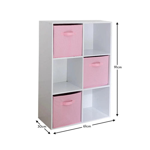 • Set Includes - 1 x 6 cube storage unit & 3 x pink storage boxes.