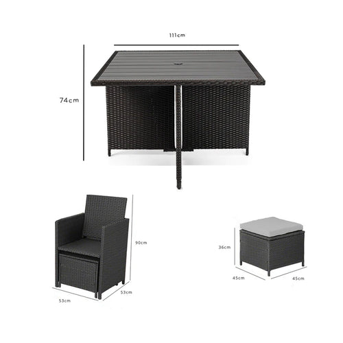 This premium bundle set offers fantastic value for money. Our 8 seat rattan cube set is perfect for outdoor dining and entertaining and is one of the most versatile options for your garden with its compact design; the footstools fit under the seats which then tuck neatly underneath the polywood-topped table.