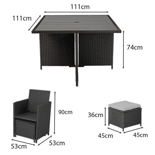 Fantastic value for money, the footstools can also be used as extra seats for when you need double the chairs, or if you take the cushions off, they create perfect mini tables for when you need extra surface space - ideal for large BBQs and summer parties.