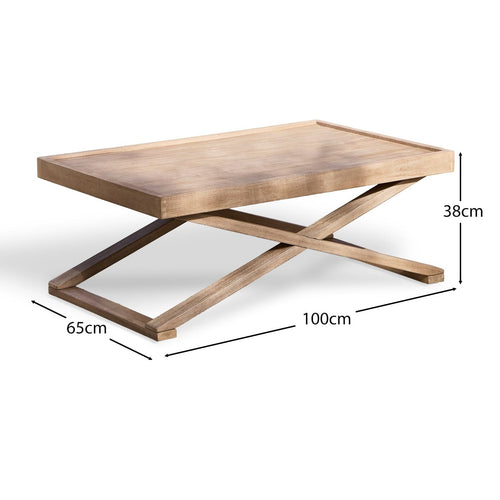 • Design features - Rectangular design raised edge, crossover legs with light brushed acacia wood finish.