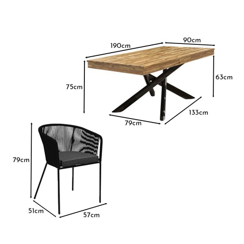Amelia 6 Seater Natural Wood Black Legs Garden Dining Set - Hali Black Chairs