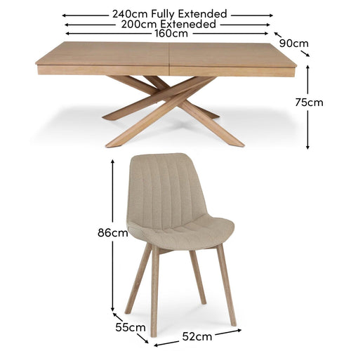 Whitewash Extending Dining Table Set - 6 Seater - Bella Light Beige Boucle Dining Chairs - Whitewash Legs