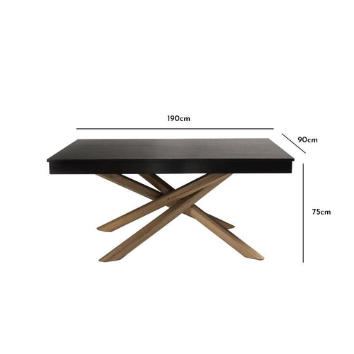 The Amelia solid black wood top dining table with oak legs is the perfect choice for contemporary-inspired décor. In a beautiful black wood colourway with an intricate oak colour leg structure, the Amelia dining table is sure to add the wow factor to your living and dining space. From lavish dinner parties to intimate soirees, the Amelia is ready for any dining experience.