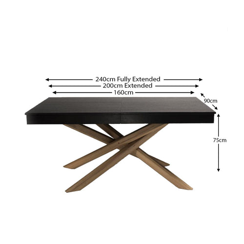 Amelia Black Wood Dining Table - Extendable - Oak Legs - Laura James