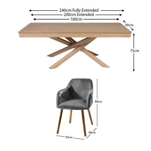Take your family meals and dinner parties to the next level with the whitewash Amelia Extending dining table, paired with the grey velvet Freya carver chairs. Dining table furniture in the Amelia collection is designed to fit today's dining room needs, which include an extendable tabletop which can accommodate more guests, providing a memorable dining experience for friends and family.