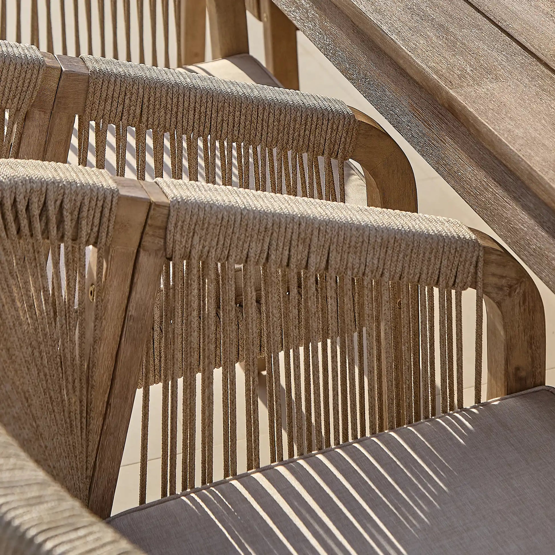 • Chair design features – Brushed light acacia wood with rope detail and sand cushion.