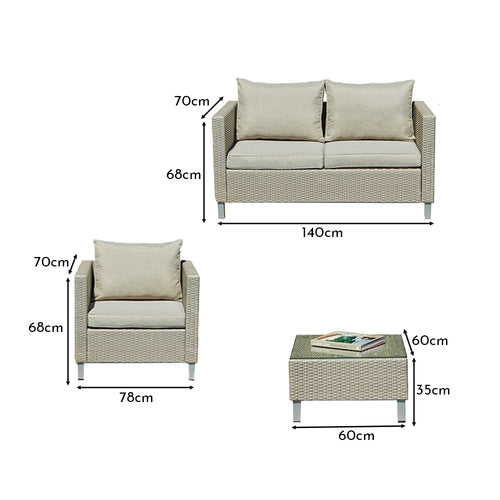 Create a stylish and comfortable outdoor seating area with the Aria Rattan Furniture Set. With a capacity to seat up to 4 people, this outdoor set is perfect for laid-back get-togethers and leisurely moments.