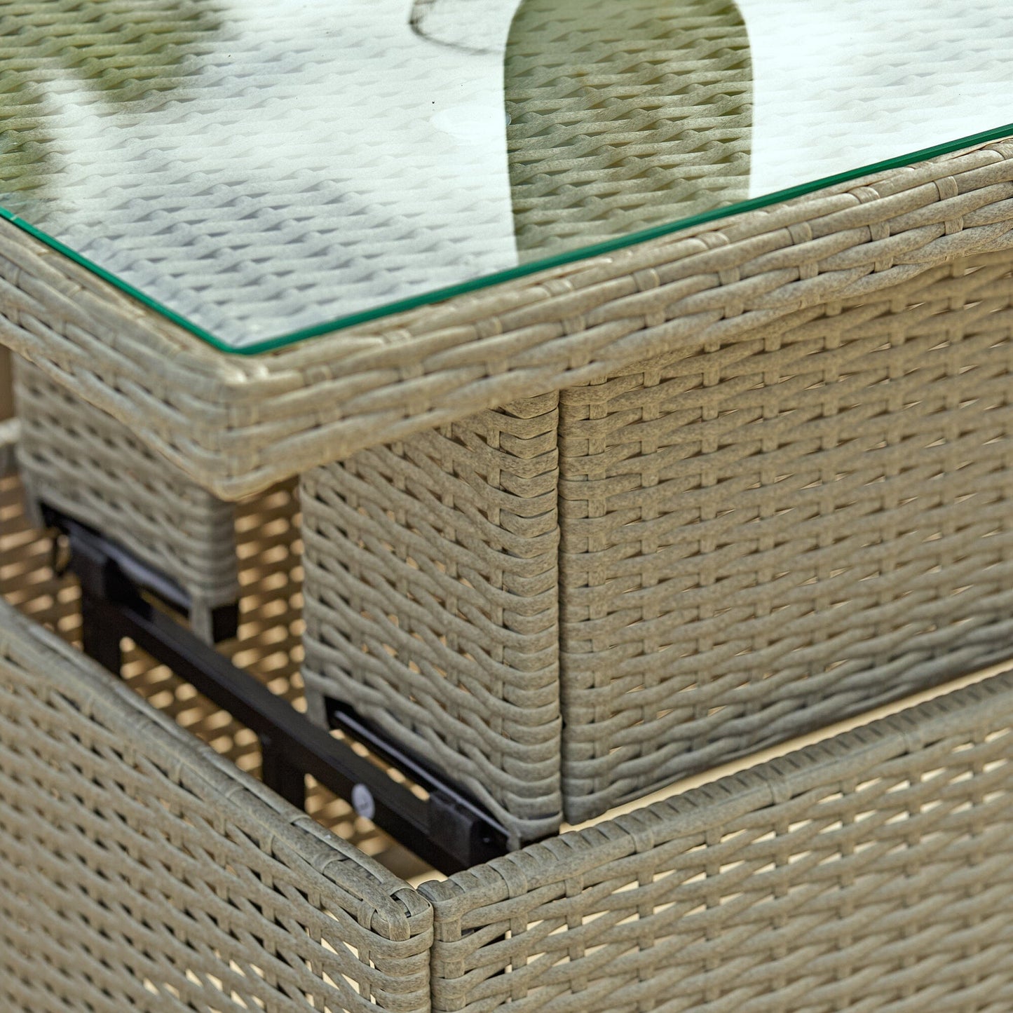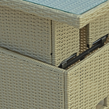 Part of the Aria collection, this grey rattan table easily transforms from a coffee table to a dining table, perfect for lounging on the matching Aria corner sofa or enjoying casual summer meals. Made from weather-resistant PE rattan with a tempered glass tabletop, it is high quality and stylish, perfect for outdoor use.