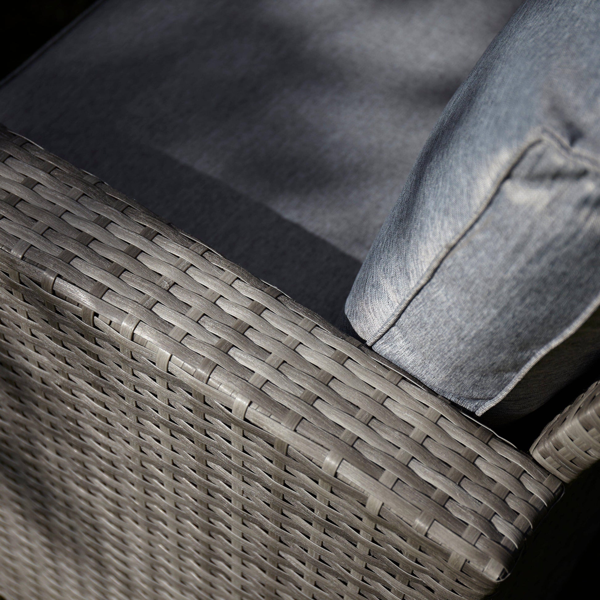 This rattan garden corner sofa and dining bundle comes complete with a grey cantilever parasol, quartered base, and an included parasol rain cover. The Aston large garden corner sofa would comfortably seat 6 but with the addition of 3 footstools which double up as extra seating, this outdoor sofa set can seat up to 9 people making it ideal for al fresco dinner parties with friends and family.