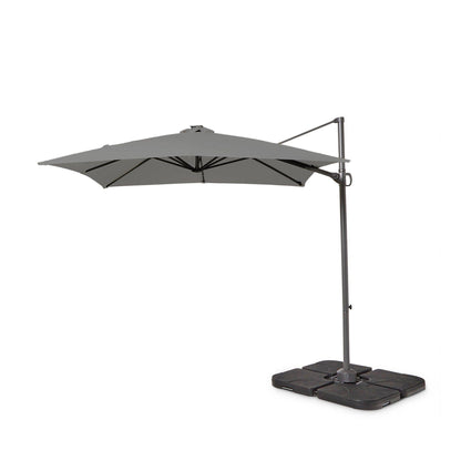 Offering a comfortable and stylish setting for relaxed socializing, the Aston grey garden  sofa set, complete with grey cantilever parasol, is timeless in design, making every summer gathering a memorable and enjoyable experience.