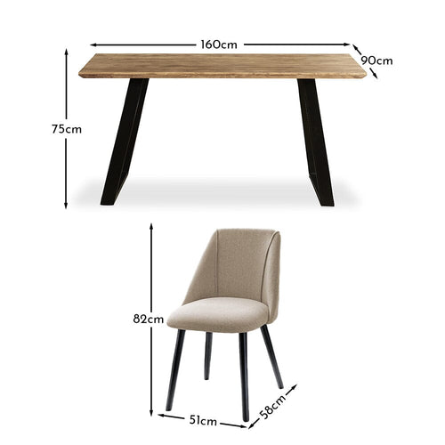 Elevate your dining space with the Atlas dining table and Freya dining chair set. The Atlas table features a chalked mango wood tabletop and black industrial style legs and comes with 6 Freya dining chairs. The Freya dining chairs are upholstered in soft touch fabric in a sand hue and feature stylish black legs and a comfy backrest.