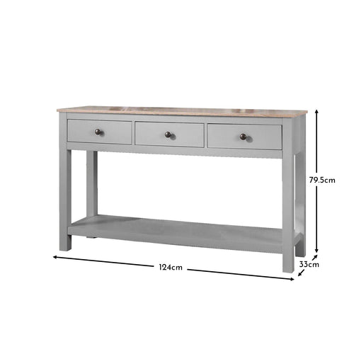 - Set Includes - 1 x Bampton 3 drawer console table in stone grey.