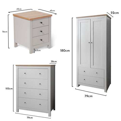 Bampton 4 Piece Bedroom Set - Chest of 4 Drawers - Stone Grey