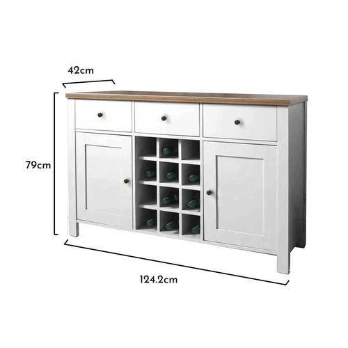 • Set Includes - 1 x Bampton sideboard with wine rack in white