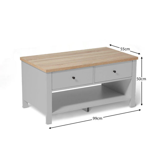 With a soft stone grey finish the Bampton coffee table will blend seamlessly with any decor style.