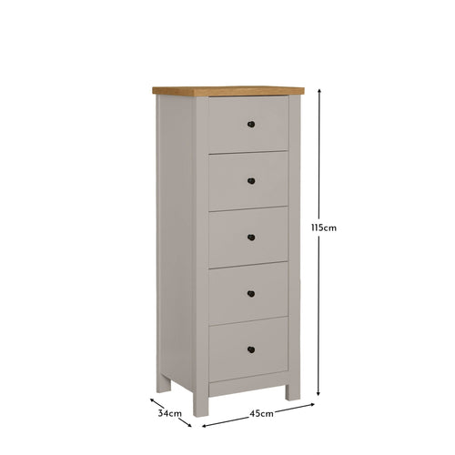 5 Drawer Tallboy - Stone Grey