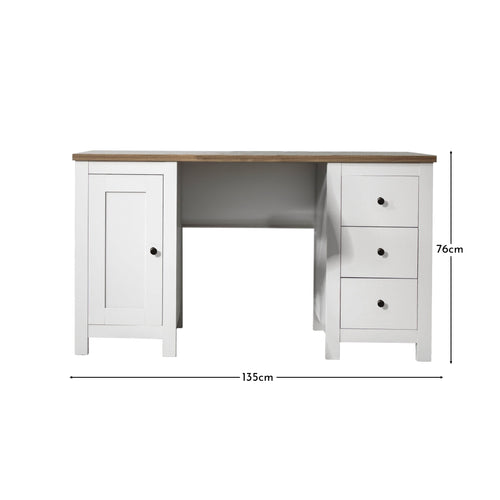 This Bampton desk comes with three drawers and 1 door that allow you to store all your essentials, and with a large table space, you can display all your favourite items.