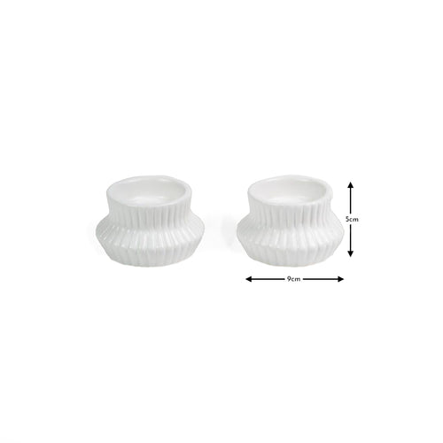 9cm Ceramic Tea Light Holder - Set of 2 - White