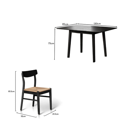 Charlie Black Extendable Dining Table Set - 4 Seater - Faye Woven Black Dining Chairs - Laura James