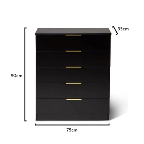Essie Black Chest of 5 Drawers with Gold Handles by Laura James