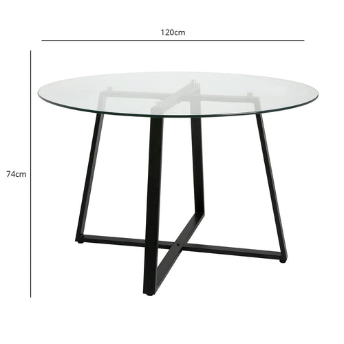 This trendy modern dining table adds a sophisticated style to your dining space. With space to seat four, this round glass dining table is perfect for creating a social environment in a small space. The Clara dining table features a glass table top and black frame that will add a touch of contemporary chic to your home.