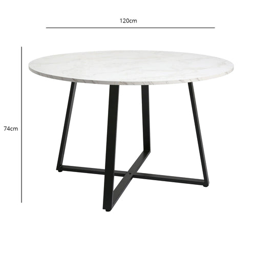 This sleek modern dining table adds a sophisticated style to your dining space. With space to seat four, this round dining table is perfect for creating a social environment in a small space. The Clara dining table is made with a marble effect tabletop and black steel frame.