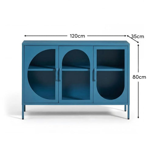 Create a bold and beautiful home with striking furniture. The Conan 3 door sideboard finished in lagoon teal is the perfect way to add colour to your space. This sideboard is made from coloured metal with matching teal handles and features an interior shelf and curved shaped fluted glass panels in each door. The Conan sideboard in teal is ideal for living and dining spaces, bringing a cool and calming touch.