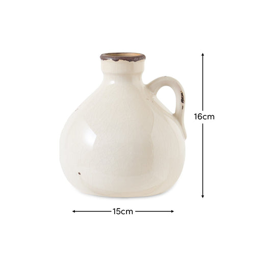 Add a rustic look to your interior this season with the Corsino vase. Finished in off white with a few subtle distressed features this ceramic rounded vase features a small handle. Add a touch of vintage charm to your home with this pretty vase and display dried flowers or foliage for a stylish touch.