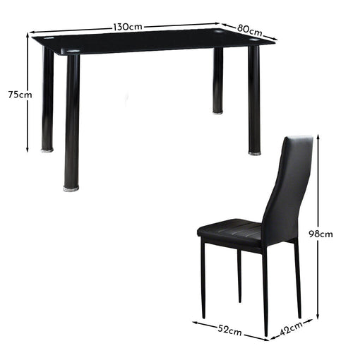 Glass Dining Table Set - 6 Seater - Anya Black Faux Leather Chairs