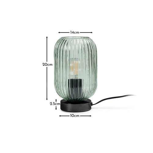 Elevate your interior space with the Elland table lamp. The Elland lamp features a fluted glass shade in a sage green hue with a black base. Ideal for any room in your home the curved design with textured ribbed glass beautifully diffuses light and the black base adds a modern look.