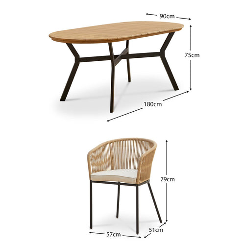 Ezra 6 Seater Oval Wooden Garden Dining Set with 6 Hali Natural Rope Chairs