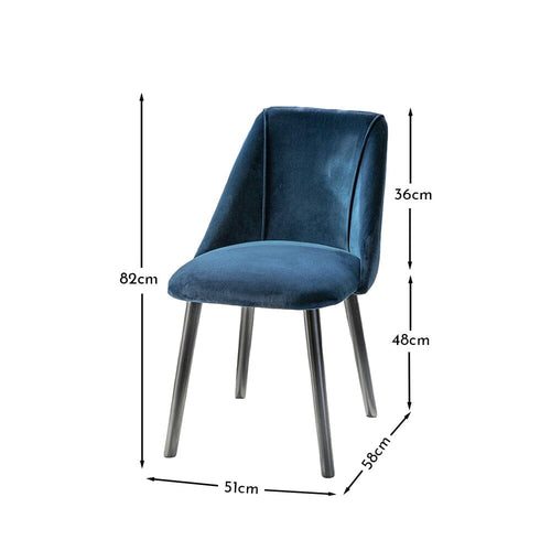 Freya Blue Velvet Dining Chairs - Set of 2 - Black Oak Legs