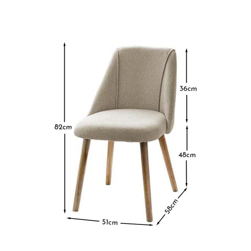 The Freya sand upholstered dining chairs, are a pair of beautifully modern chairs that prioritize both comfort and style. With cushioned seating for extra support and cosiness, these chairs in sand upholstery add an eye-catching contemporary feel to any dining area. The whitewash oak effect wooden legs of the chairs give off a sleek and modern vibe that will match any interior design.