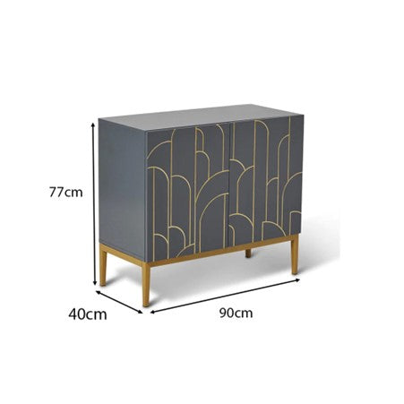 This eye-catching grey 2-door sideboard adds a new lease of life to any room in your home. Its Art Deco inspired gold design creates interest and appeal, becoming the ultimate furniture piece for both storage and decoration.