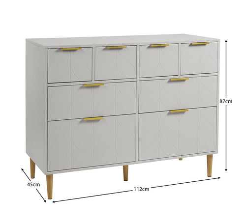 8 Drawer Chest of Drawers - Grey & Brass Effect