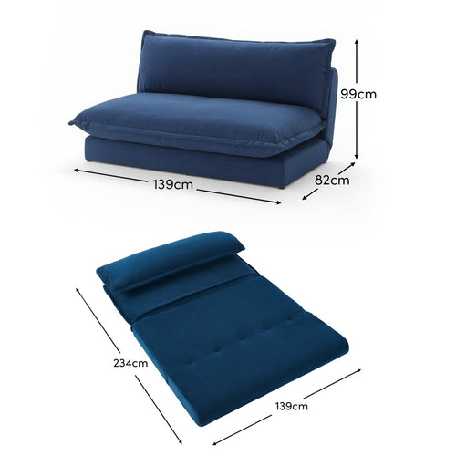 The Harlow 2 seater velvet sofa bed makes the perfect addition to any living space or guest room. Finished in a stylish shade of ink blue the Harlow features oxford edge piping and extra filled cushions for a comfy and contemporary feel. Transform from sofa to bed with an easy pull out function. The Harlow back can be adjusted depending on comfort level.