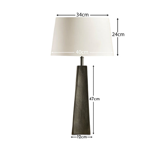 • Design Features - 47cm metal lamp base with cable and in-line ON/OFF switch with an EU/UK convertible plug and requires an ES bulb maximum capacity 40W. Taupe 40cm lamp shade.