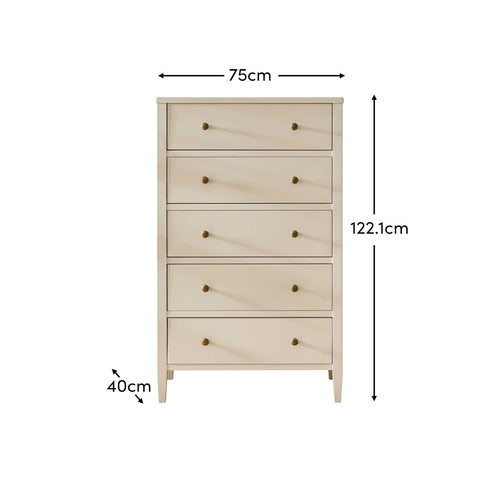 5 Drawer Tall Chest of Drawers - Ivory White